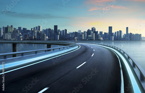 Fototapeta premium Highway overpass motion blur with city background .