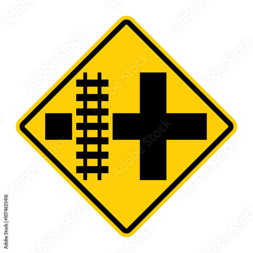 Fototapeta premium Highway Rail Transit Grade Crossing warning road sign. Vector