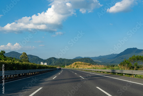 © zhikun sun, Fototapeta premium highway road and green forest with mountain nature landscape