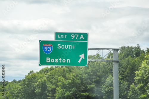 © Bill, Fototapeta premium Highway Signage - Boston Route 93 South - June 18, 2022, Massachusetts, United States