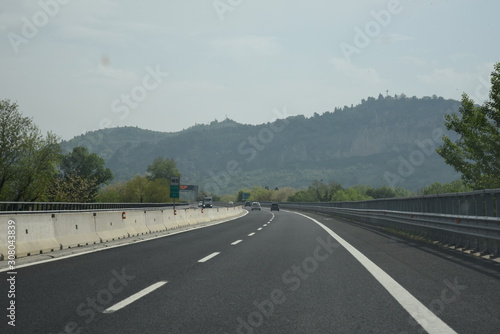 © FabriZiock, Naklejka premium Highway Travel by Morning with Cloudy Sky