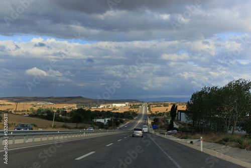 © Kozlik_mozlik, Fototapeta premium Highway wide road, transport and blue sky with clouds on a summer day