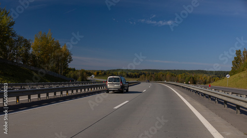 © Kozlik_mozlik, Naklejka premium Highway wide road, transport and blue sky with clouds on a summer day