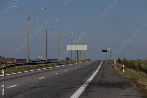 Fototapeta premium Highway wide road, transport and blue sky with clouds on a summer day
