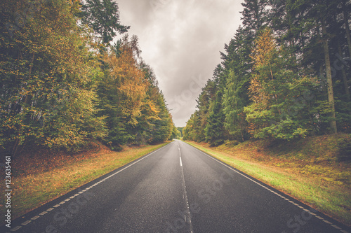 © Polarpx, Fototapeta premium Highway with colorful trees by the road