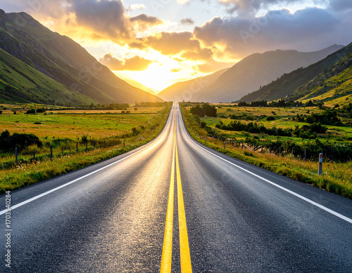 Naklejka premium Highway with Smooth Black Asphalt and Double Yellow Center Lines
