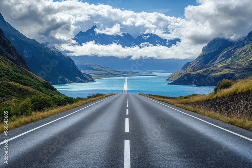 © Cetin, Fototapeta premium highway with white lines, a sea and sky background