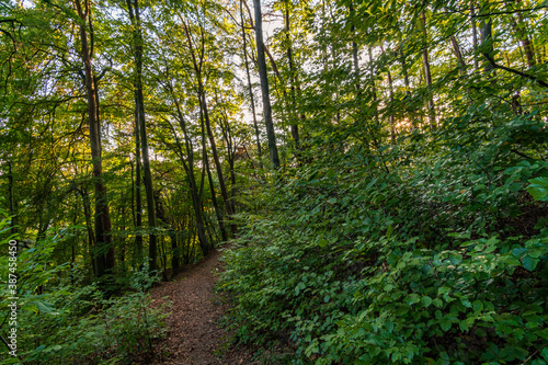 © mindscapephotos, Obraz premium Hike at the golden hour to the famous Heidenhoehlen near Stockach on Lake Constance