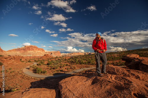 © Maygutyak, Fototapeta premium Hiker in Capitol reef National park in Utah, USA