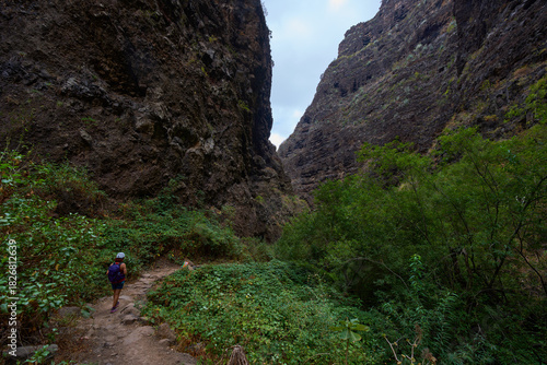 © Xalanx, Obraz premium Hiker in dramatic narrow canyon