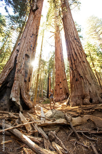 Obraz premium Hiker in Sequoia national park in California, USA