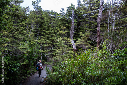 © Seppo, Fototapeta premium hiker in the tongariro forest