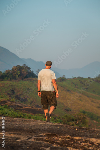 © lizavetta, Naklejka premium Hiker on the top of the mountain.