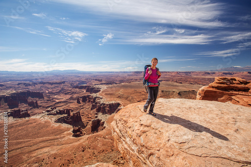Fototapeta premium Hiker rests in Canyonlands National park in Utah, USA