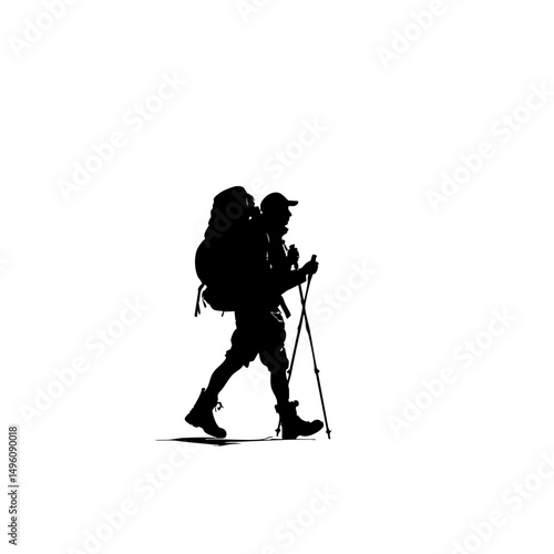 © Thushan, Fototapeta premium Hiker Silhouette Icon - Minimalist Trekking Pictogram