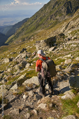 © Xalanx, Fototapeta premium Hiker with backpack on the trail