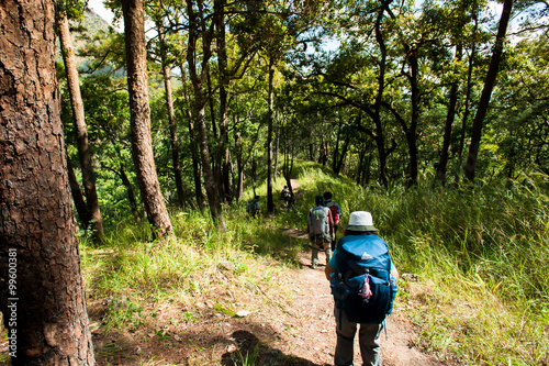 © fototrips, Naklejka premium Hiker with backpack standing on top of a mountain