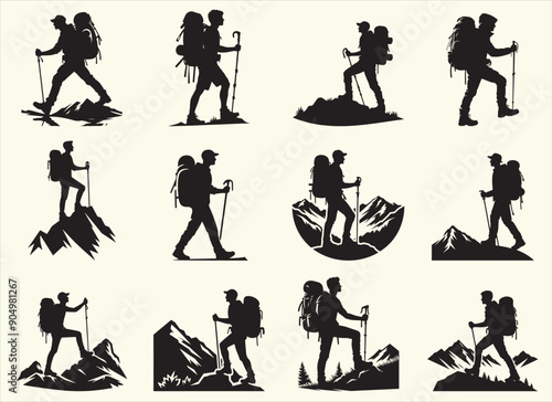 © PixSham, Obraz premium Hikers Silhouette Vector Illustration