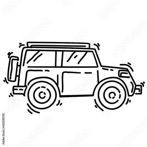 Fototapeta premium Hiking adventure car ,trip,travel,camping. hand drawn icon design, outline black,vector icon.