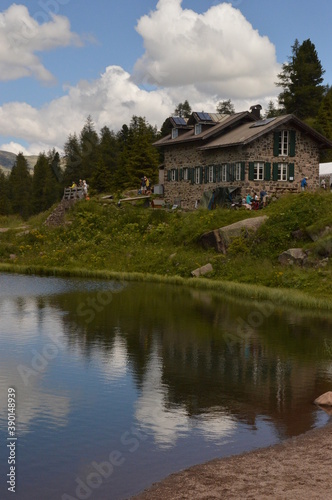 Fototapeta premium Hiking and climbing in the stunning valleys and mountains of Val di Fiemme in...