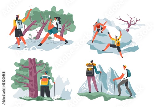 Naklejka premium Hiking and climbing, mountaineering adventures