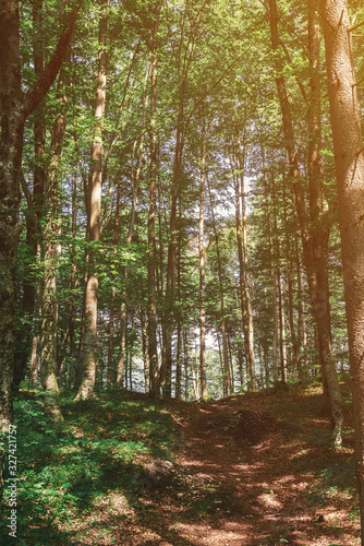 © Bits and Splits, Obraz premium Hiking footpath in forest