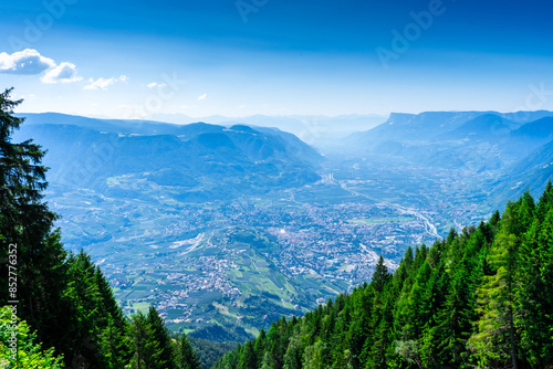 © Sharidan, Fototapeta premium Hiking Hochmuth Southtyrol near Dorf Tirol. With sights over Meran.