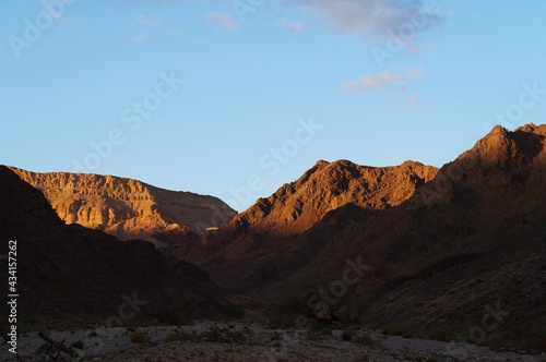 Fototapeta premium Hiking in mountains near Eilat, Israel, twilight time