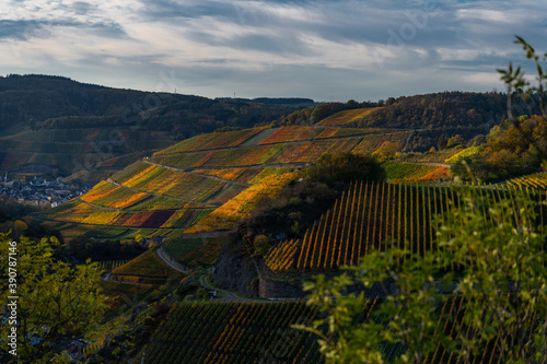 Naklejka premium Hiking in the Ahr valley on a sunny autumn day on the red wine trail