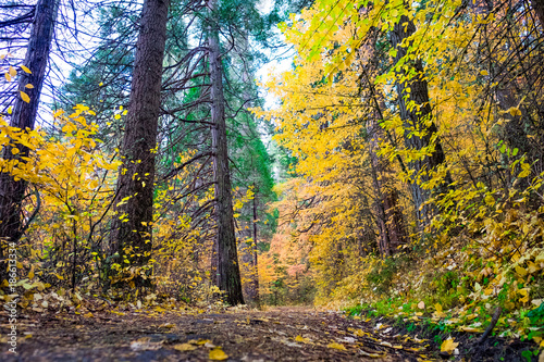 Fototapeta premium Hiking in Yosemite with fall foilage