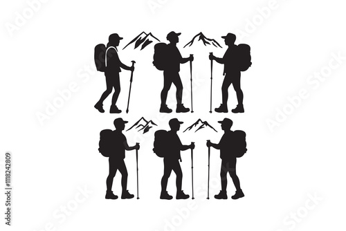 © KafiulBari, Obraz premium Hiking man Silhouettes. hiker with rucksacks silhouette.