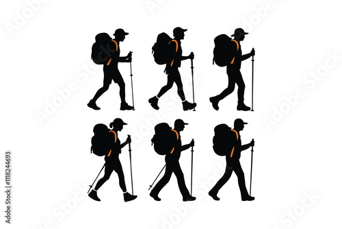 © KafiulBari, Obraz premium Hiking man Silhouettes. hiker with rucksacks silhouette.