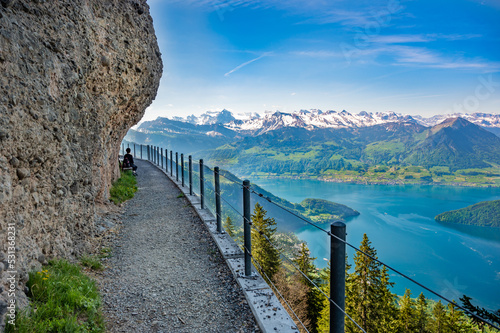 © borisbelenky, Obraz premium Hiking pass at Rigi mount above Lake Lucerne. Switzerland.