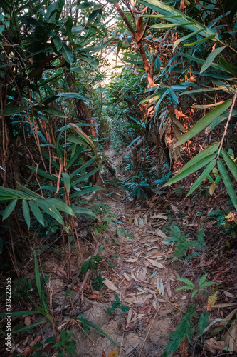 © hanohiki, Fototapeta premium hiking path in forest, walkway through trees -