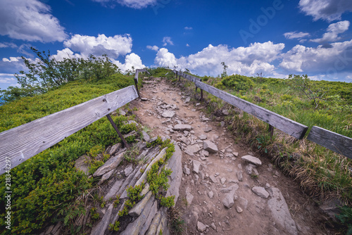 © Fotokon, Fototapeta premium Hiking path to Osadzki Wierch mountain in Bieszczady National Park, Subcarpathian Voivodeship of Poland