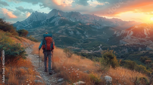 © DuangphonKPR, Fototapeta premium hiking, side view, mountain trail, advanced tone, vivid