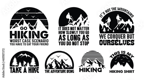 Fototapeta premium Hiking T shirt Design Bundle, Vintage Hiking T shirt design, camping shirt, hiking, camping, outdoor, typography T shirt design Collection