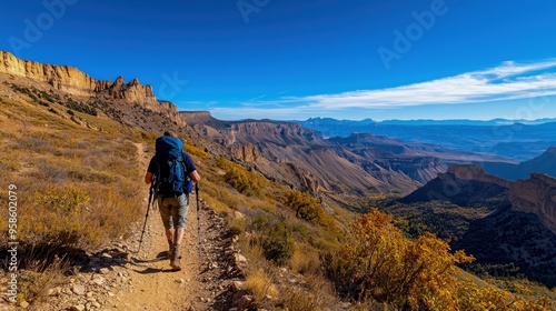 © Chananphat, Fototapeta premium Hiking Through Majestic Mountain Scenery
