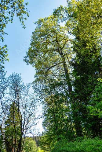 Fototapeta premium Hiking through the World Forest, Weltwald in Freising near Munich in Bavaria,...