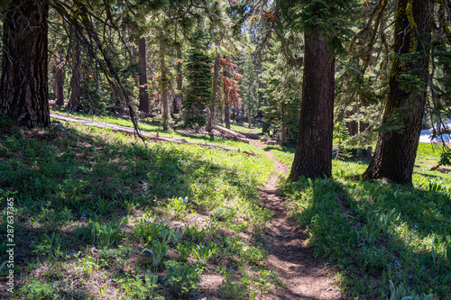 Obraz premium Hiking trail in deep pine woods in California