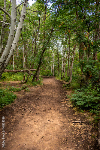© Dallas, Fototapeta premium Hiking Trail Leading Through Green Forest