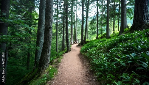 © Furqan, Obraz premium Hiking trail through a dense forest