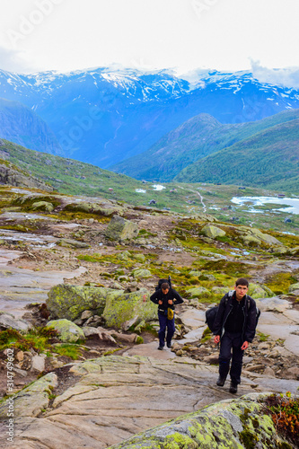 Fototapeta premium Hiking Trip to Trolltunga, Norway.