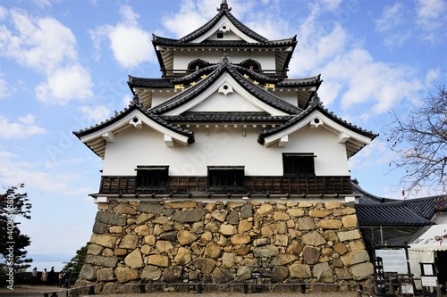 Fototapeta premium Hikone Castle with Blue Sky in Hikone City of Shiga, Japan - 日本 滋賀県 彦根城 青空