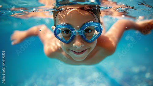© The Little Hut, Naklejka premium hildren swimming in the pool : Generative AI