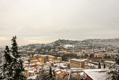 Fototapeta premium Hill of Verona city (UNESCO world heritage site) in winter with snow, Veneto, Italy, Europe