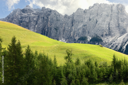 Fototapeta premium Hill with fresh green grass in the Italian Dolomites
