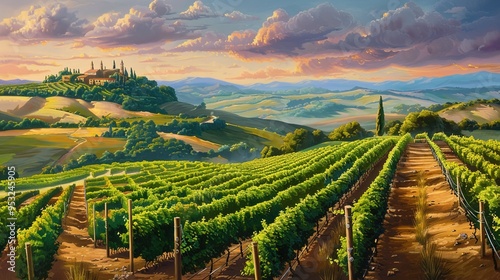 © pixelwallpaper, Fototapeta premium hills and vineyard wallpaper