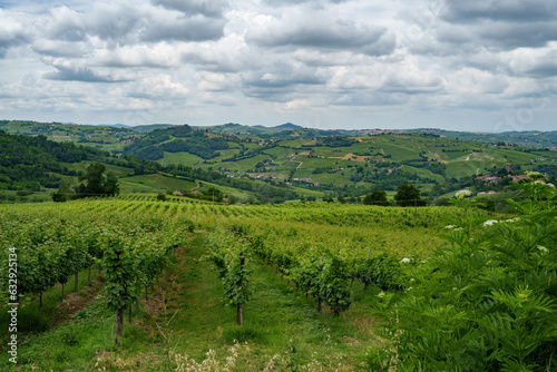 Naklejka premium Hills of Oltrepo Pavese at June. Vineyards