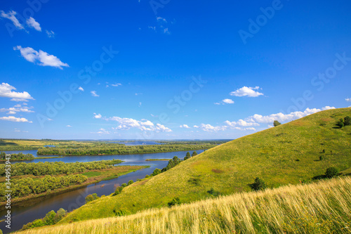 © Андрей Пугачев, Naklejka premium hills overgrown with grass and trees on the banks of the Vyatka River